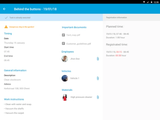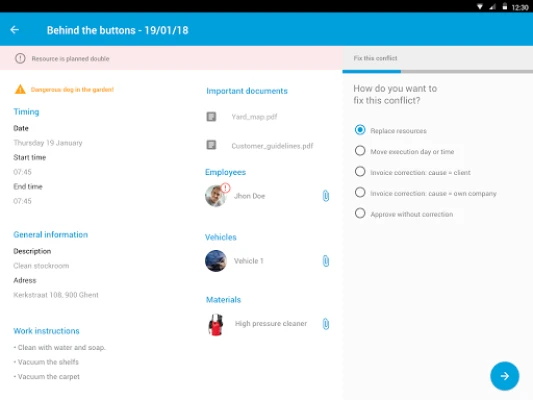 You are without access to the planning of your team that is made in the office in the ButtonsforCleaners flex of force