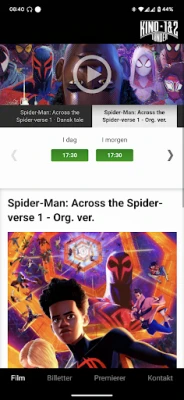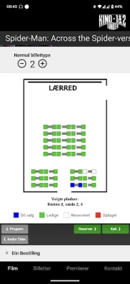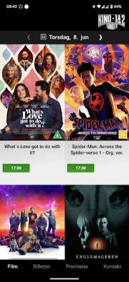 Med denne app har du mulighed for at gennemse programmet for Kino 1&2 samt se yderligere filminformationer som trailer, censur, medvirkende skuespillere, varighed m.m. Endvidere giver denne app adgang til billetbestilling og billetkøb med pladsvalg. App’en giver også mulighed for at købe en bestilling, hvis du ikke har mulighed for at afhente den inden tidsfristen udløber.