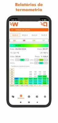 Visualize relatórios e imagens gradientes de termometria, estoque automático de grãos e parametrize suas unidades armazenadoras.
