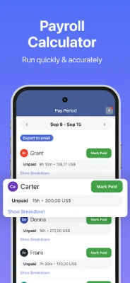 The Employee Link is so simple to learn, your whole crew will be able to start tracking time right away. With one click they can view tasks on their schedule and tap the task to mark it complete. Increase productivity and decrease overtime by tracking attendance and break- time length. Entering a employee's wage works well for showing gross pay earned. An employee might ask, "what is mypay for this calendar month?", the pay period time calculator will instantly show them their total hours clocked and total pay.